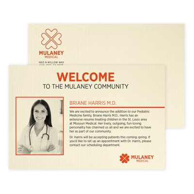 - 4" x 6", printed 2-sided, available in both vertical and horizontal orientation.