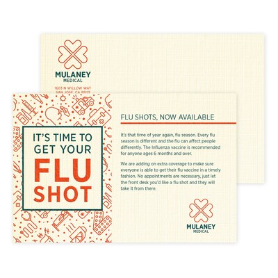 - 4" x 6", printed 2-sided, available in both vertical and horizontal orientation.