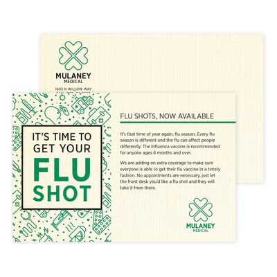 - 4" x 6", printed 2-sided, available in both vertical and horizontal orientation.