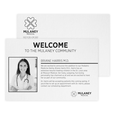 - 4" x 6", printed 2-sided, available in both vertical and horizontal orientation.