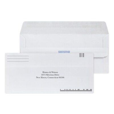 Custom #10 Barcode Self Seal Envelopes, 4 1/8" x 9 1/2", 24# White Wove, 1 Standard Ink, 250 / Pack