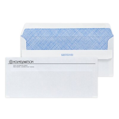 Custom #10 Barcode Self Seal Envelopes with Security Tint, 4 1/4" x 9 1/2", 24# White Wove, 1 Standard Ink, 250 / Pack