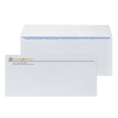 Custom #10 Peel and Seal Envelopes with Security Tint, 4 1/8" x 9 1/2", 24# White Wove, 1 Standard and 1 Custom Inks, 250 / Pack