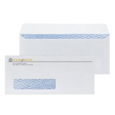 Custom #10 Peel and Seal Window Envelopes with Security Tint, 4 1/8"x9 1/2", 24# White Wove, 1 Std and 1 Custom Inks, 250/Pack
