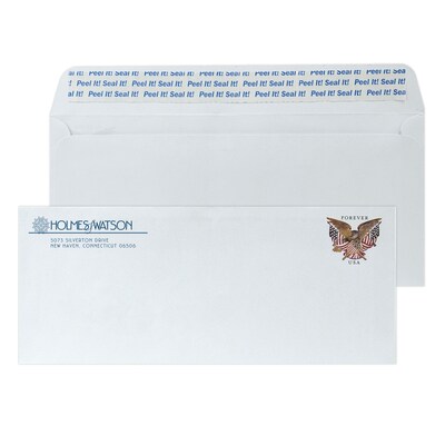 Custom #10 Pre-stamped Peel and Seal Envelopes, 4 1/4" x 9 1/2", 24# White Wove, 1 Custom Ink, 250 / Pack