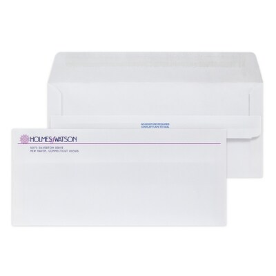 Custom #10 Self Seal Envelopes, 4 1/8" x 9 1/2", 24# White Wove, 2 Custom Inks, 250 / Pack