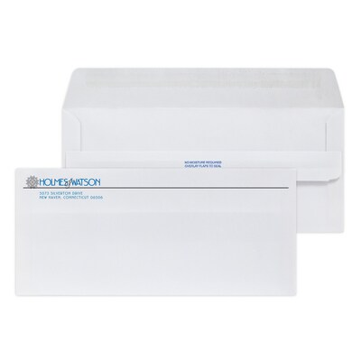Custom #10 Self Seal Envelopes, 4 1/8" x 9 1/2", 24# White Wove, 2 Standard Inks, 250 / Pack