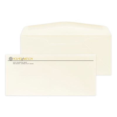 Custom #10 Stationery Envelope, 4 1/8" x9 1/2", 24# Strathmore Writing Natural White Wove, 1 Std and 1 Custom Flat Ink, 250/Pack