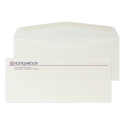 Custom #10 Stationery Envelopes, 4 1/8" x 9 1/2", 24# CLASSIC® LAID Natural White, 2 Custom Raised Inks, 250 / Pack