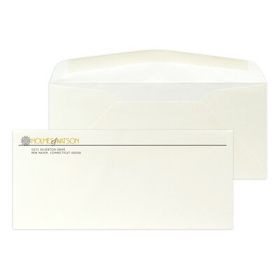 Custom #10 Stationery Envelopes, 4 1/8" x 9 1/2", 70# Hi White Text, 1 Standard Flat Ink, 250 / Pack