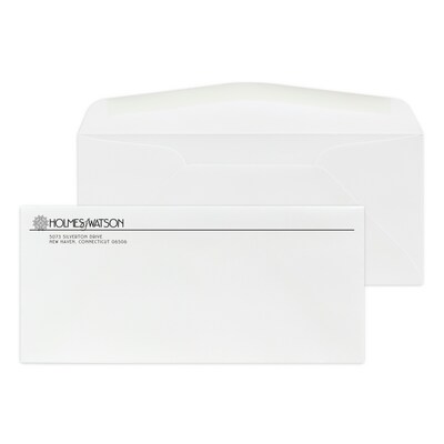 Custom #10 Stationery Envelopes, 4 1/8" x 9 1/2", 24# Strathmore Writing Bright White Wove, 1 Standard Flat Ink, 250 / Pack