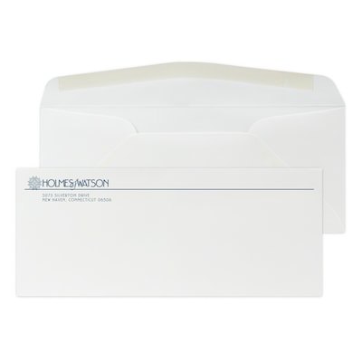 Custom #10 Stationery Envelopes, 4 1/8" x 9 1/2", 24# Strathmore Writing Ultimate White Wove, 1 Custom Flat Ink, 250 / Pack