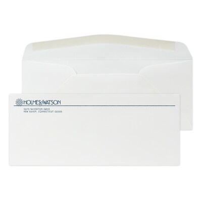 Custom #10 Stationery Envelopes, 4 1/8" x 9 1/2", 24# Strathmore Writing Ultimate White Wove, 1 Custom Raised Ink, 250 / Pack