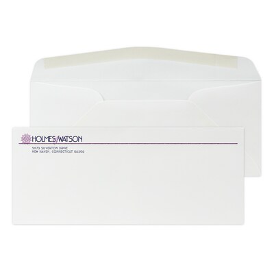 Custom #10 Stationery Envelopes, 4 1/8" x 9 1/2", 24# Strathmore Writing Ultimate White Wove, 2 Custom Raised Inks, 250 / Pack