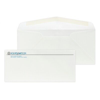 Custom #10 Stationery Envelopes, 4 1/8" x 9 1/2", 80# Mohawk Superfine Eggshell Ultrawhite Text, 2 Standard Flat Inks, 250/Pack