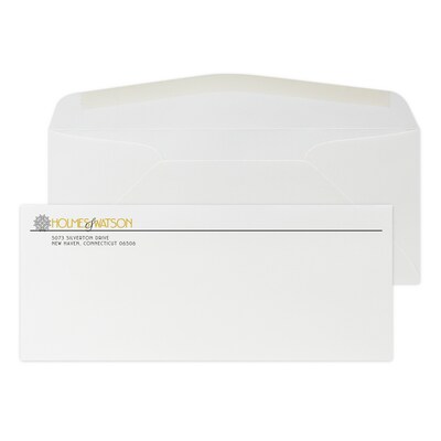 Custom #10 Stationery Envelopes, 4 1/8"x9 1/2", 80# CLASSIC® LINEN Solar White Text, 1 Standard and 1 Custom Flat Inks, 250/Pack