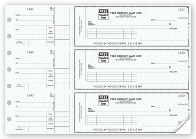 These popular 3-on-a-page business checks make it easy to track payment details in 1 convenient place!Our binder checks & vouchers have the room you need for extra details & longer descriptions! Trusted by 7,000 financial institutions nationwide, features include chemically sensitive paper, microprint border, invisible fluorescent fibers, erasure protection, security screen & warning box.