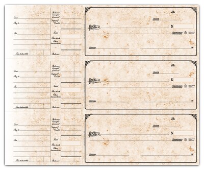 Custom 3-On-A-Page Compact Size Checks, Side-Tear Voucher, 1 Ply, Premium Color, 1 Color Printing, 6" x 2.75", 250/Pk