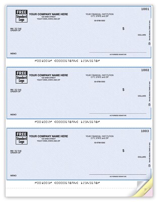 Order Custom 3-To-A-Page Laser Checks, Unlined, 3 Ply/Triplicate, 1 Color Printing, Premium Check Design, 8-1/2" x 11", 300/Pack today at Quill.com and get fast shipping. Stack coupons to get free gifts & extra discounts!