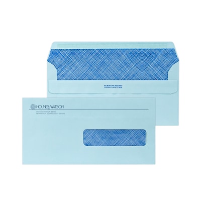 Custom 4-1/2" x 9" Insurance Claim Self Seal Right Window Envelopes with Security Tint, 24# Blue Wove, 1 Custom Ink, 250 / Pack