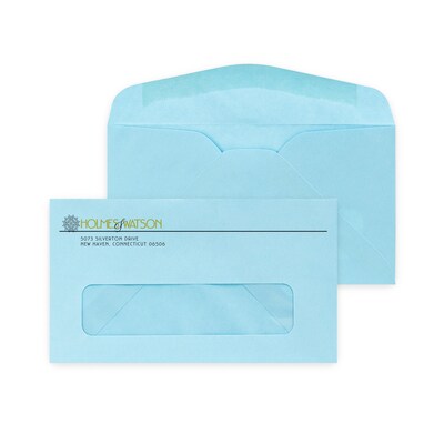 Custom #6-3/4 Window Envelopes, 3 5/8" x 6 1/2", 24# Blue Wove, 1 Standard and 1 Custom Inks, 250 / Pack