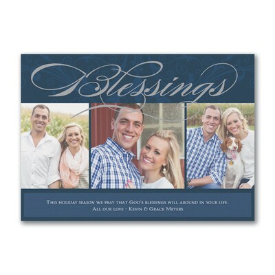 Custom 7" x 5" Blessings Holiday Photo Card, White Smooth 115#, 25/Pack