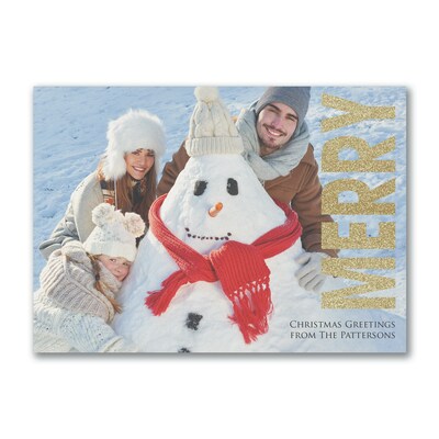 Custom 7" x 5" Merry Holiday Photo Card, White Smooth 115#, 25/Pack
