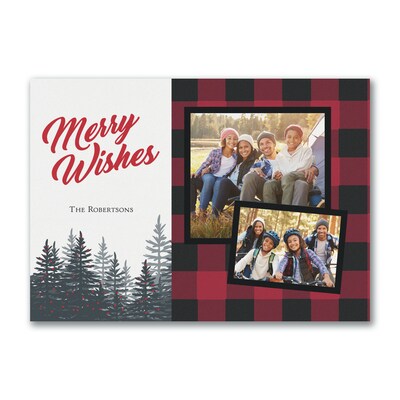 Order Custom 7" x 5" Merry Wishes Plaid Holiday Photo Card, White Smooth 115#, 25/Pack today at Quill.com and get fast shipping. Stack coupons to get free gifts & extra discounts!