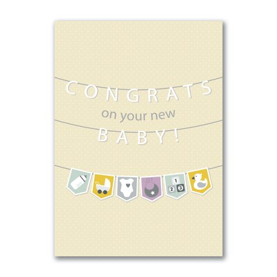 Custom Baby Bunting Congratulations Cards, With Envelopes, 5-5/8" x 7-7/8", 25 Cards per Set