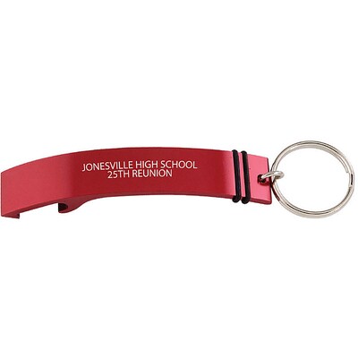- Two in one bottle opener and key chain with silver key ring