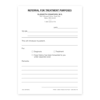 Custom Referral for Treatment Slips, 5-1/2" x 8-1/2", 100 Sheets per Pad