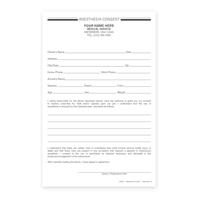 Custom Carbonless Veterinarian Surgical Consent Form, 5-1/2" x 8-1/2", 100 Sets per Pad