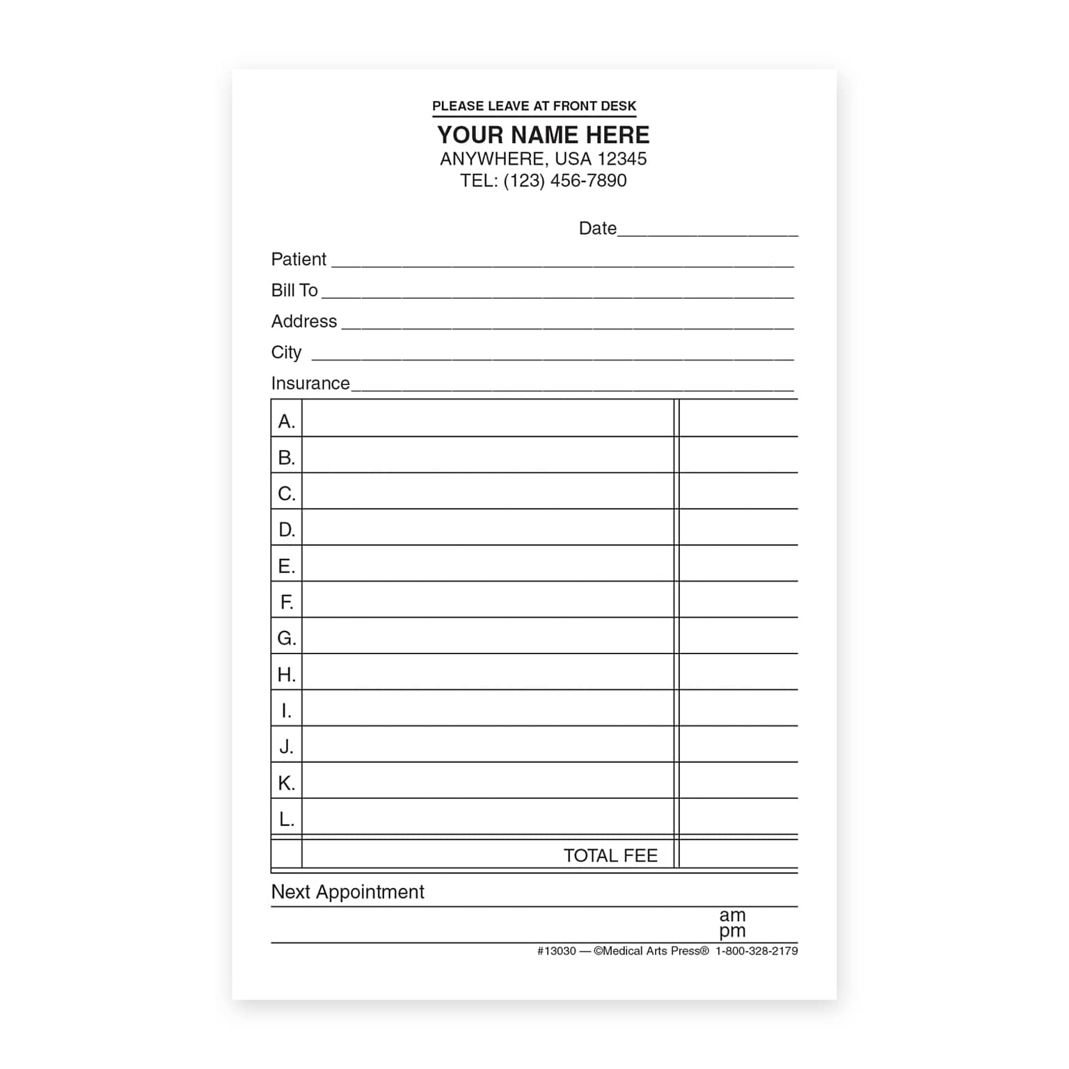 - Custom black imprint available at the top of the form including consecutive numbering
