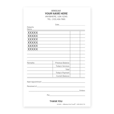 Custom Carbonless Itemized Service Slips, 3-1/4" x 5", 100 Sheets per Pad