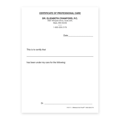 Custom Certificate of Professional Care Slips, 4" x 5-1/2", 100 Sheets per Pad