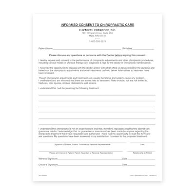 Custom Chiropractic Informed Consent Forms, 8-1/2" x 11", 250 Sheets per Pack