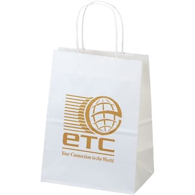 Custom Classic Paper Bags; White Kraft, 9-3/4x7-3/4x4-3/4"
