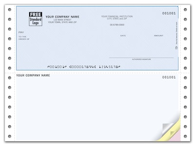 Order Custom Continuous Top Check, Compatible with MYOB, 3 Ply/Triplicate, 1 Color Printing, Standard Check Color, 9-1/2" x 7", 500/Pk today at Quill.com and get fast shipping. Stack coupons to get free gifts & extra discounts!