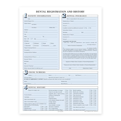 Custom Dental Registration Forms, 8-1/2" x 11", 250 Sheets per Pack
