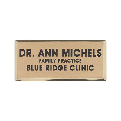 Custom Engraved Gold Metallic Badge, 1-1/2" x 3"