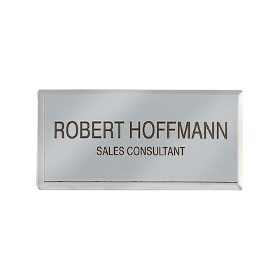 Custom Engraved Silver Metallic Badge, 1-1/2" x 3"