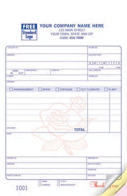 Custom Florist Register Form, Classic Design, Large Format, 3 Parts, 1 Color Printing, 5 1/2" x 8 1/2", 500/Pack