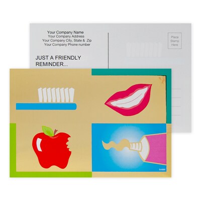 Custom Foil Postcards, Four Dental Icons- Gold Foil, 4" x 6", 12 pt. Coated Front Side Stock, Flat Print, Horiz, 2-Sided, 100/Pk