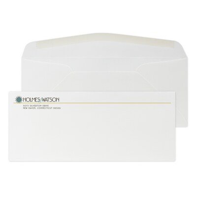 Custom Full Color #10 Stationery Envelopes, 4 1/8" x 9 1/2", 80# CLASSIC® LINEN Solar White Text, Flat Ink, 250 / Pack