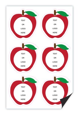 Custom Full Color Apple Shaped Magnets, 30 mil. Magnetic stock, 6-Perforated Magnets per Sheet, 3" x 3"