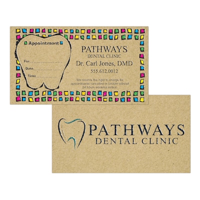 This uncoated ENVIRONMENT® brand appointment card is made with post-consumer fibers to remain eco-friendly and the kraft stock provides a natural look and a smooth touch.