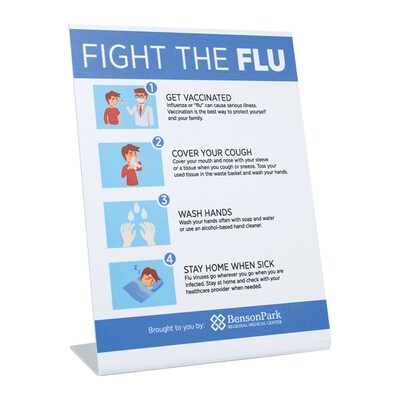 Pedestal signs are produced with a bend to create a short base to allow the sign to stand up without a holder.