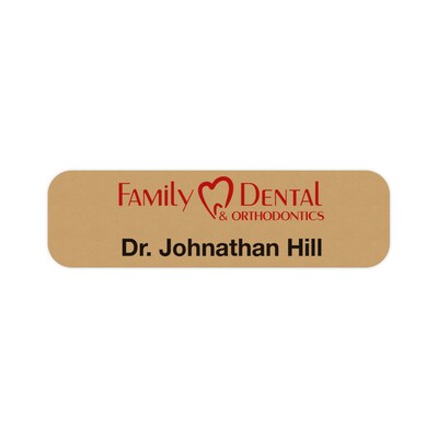 Custom Full Color Gold Plastic Name Badge, 1" x 3-1/2"