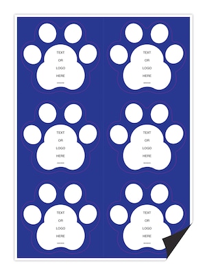 Custom Full Color Paw Print Shaped Magnets, 30 mil. Magnetic stock, 6-Perforated Magnets per Sheet, 3" x 3"