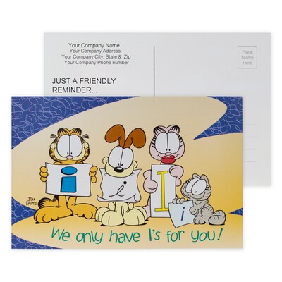 Custom Full Color Postcards, Garfield Have I's for You, 4" x 6", 12 pt. Coated Front Side Stock, Flt Prnt, Horiz, 2-Side, 100/Pk